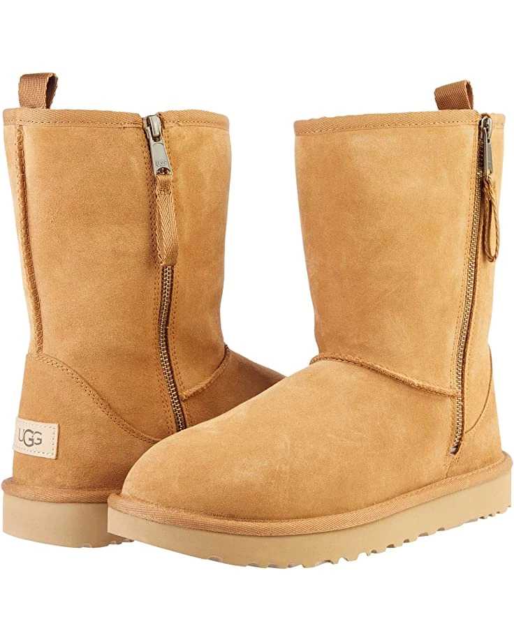 - Timeless style, now easier than ever. The Ugg® for all adaptive Classic Short Dual Zip Boot Ugg’s most timeless silhouette updated with oversized double zippers and a rear pull tab, the Classic Short Dual Zip Boot offers the iconic look and feel of the original Classic with easier entry than ever before. Made of rich suede and lined in the cozy UGGplush™ wool blend for signature softness, plus a Treadlite by UGG™ outsole for all-day cushion and grip.