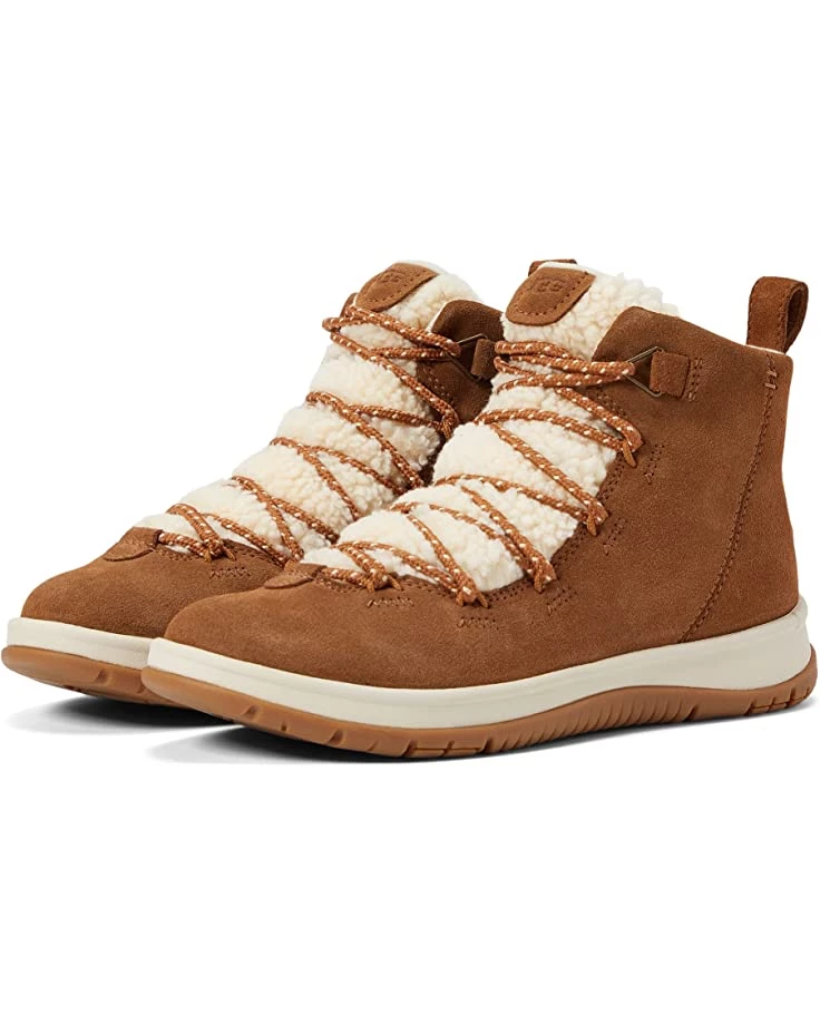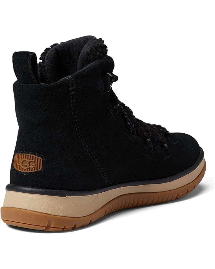 - The UGG® Lakesider Heritage Mid is a sneaker-boot hybrid featuring timeless heritage details, seam-sealed waterproof suede, and our cozy UGGplush™ wool blend, that easily stands out with Faux shearling along the tongue. Lined in our softest fleece with a White Spider Rubber sole for enhanced traction in dry, wet, and icy conditions, this lace-up statement silhouette pairs with all your favorite winter looks.